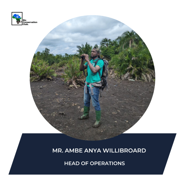 His hands-on experience at Korup National Park has nurtured a keen understanding of local biodiversity and the intricate balance between human activities and wildlife conservation. Ambeh’s commitment extends beyond fieldwork; he is passionate about educating future generations on the importance of preserving our natural heritage. Through his work, he aims to foster greater awareness and sustainable practices that safeguard biodiversity for future generations.